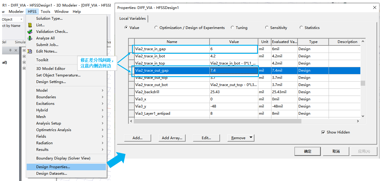 2. 进入HFSS后,一定要修改差分线对内的空隙间距