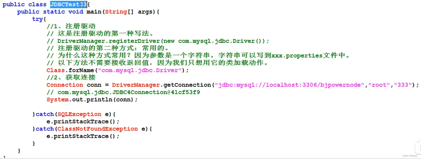 conn = DriverManager.getConnection("jdbc:mysql://localhost:3306/bjpowernode","root","123456");