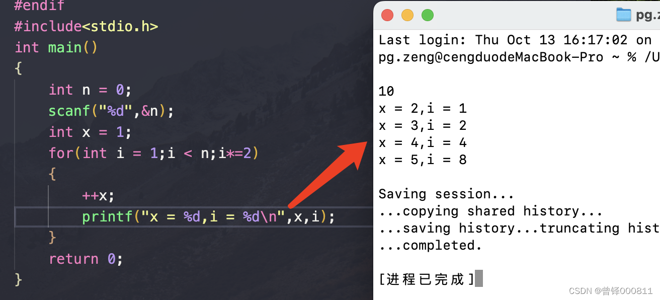 例如在这里我给出一个程序,定义整形变量n作为循环条件并由用户决定n值的大小,定义整形值x,在循环中,对x的值进行累加并对x的值进行输出,每执行一次循环,循环变量i的值就变为原来的两倍,例如在程序程序中我输入n的值为10,运行结果为:
