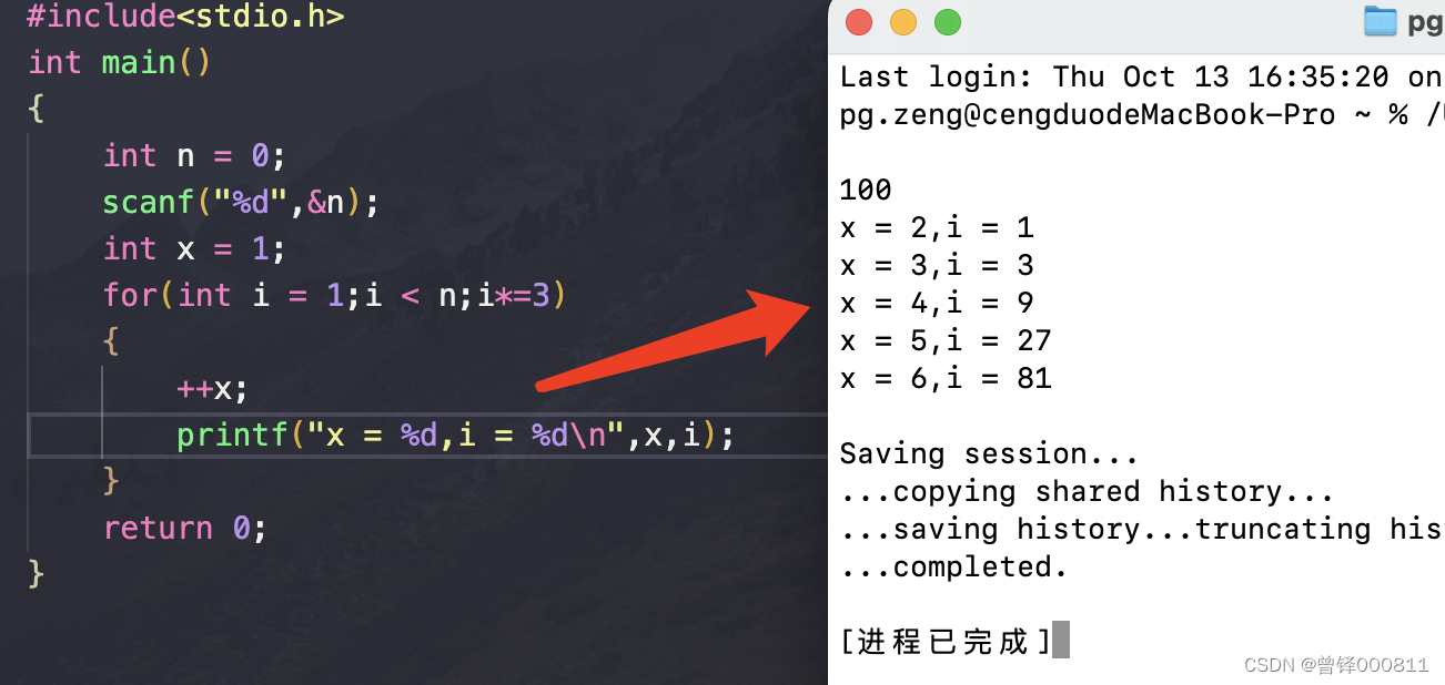 结果是正确的,此时如果我把循环操作从原来的i *= 2(i = i * 2)变为i *= 3(i = i * 3),此时程序运行的次数又将如何表示?很简单,我们只需要将log函数中的底从2换为3即可,也就是: