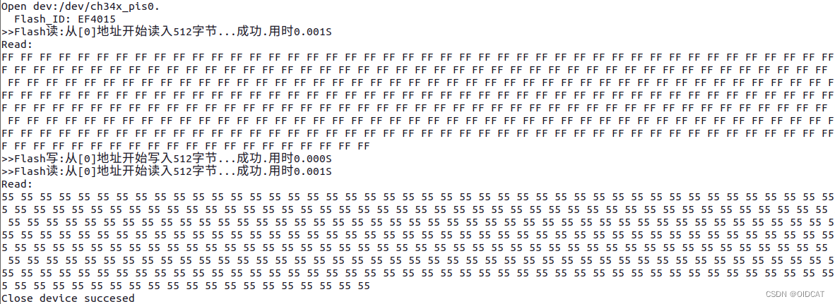 printf(">>Flash读:从[%lX]地址开始读入%ld字节...成功.用时%.3fS\n", FlashAddr, DataLen, UseT);