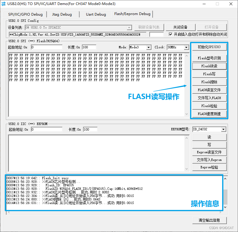 除此之外,CH347也可操作常见AT25/26、GD25等FLASH