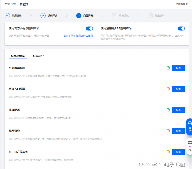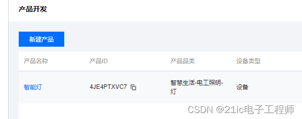 产品创建成功后便可在产品列表里面看到“智能灯”