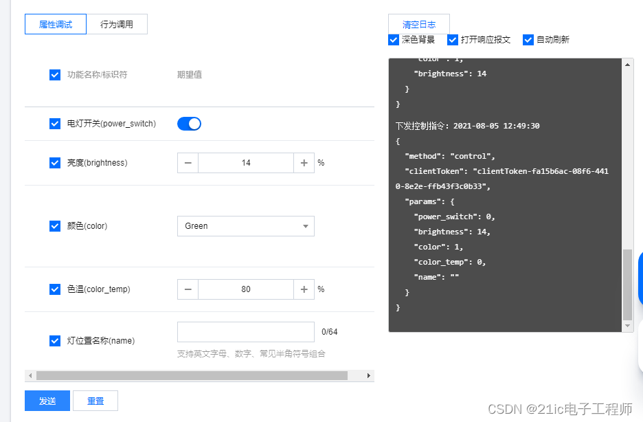 进入智能灯,更改灯的状态,下发指令,可以看到开发板的OLED已经更新。