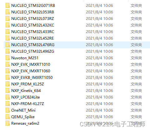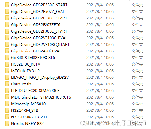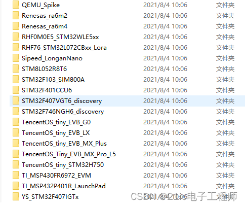 这个文件夹中包含了目前为止TencentOS tiny 适配的开发板合集,在测试学习的时候非常好用,基本上热门的开发板均有适配。如果自己适配了新的开发板可以在开发完成后提交合并上去,为后续的开发者提供便利,到手即用。目前已适配很多。