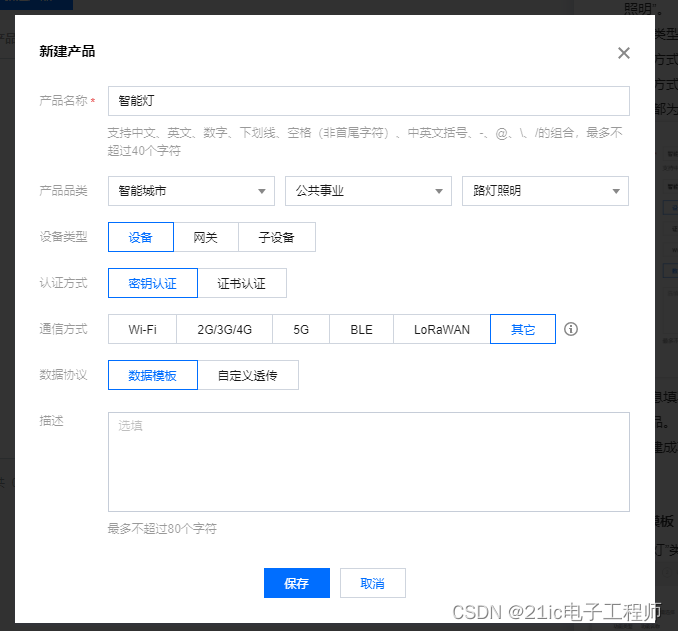 - 产品品类:选择“智慧城市”>“公共事业”>“路灯照明”。