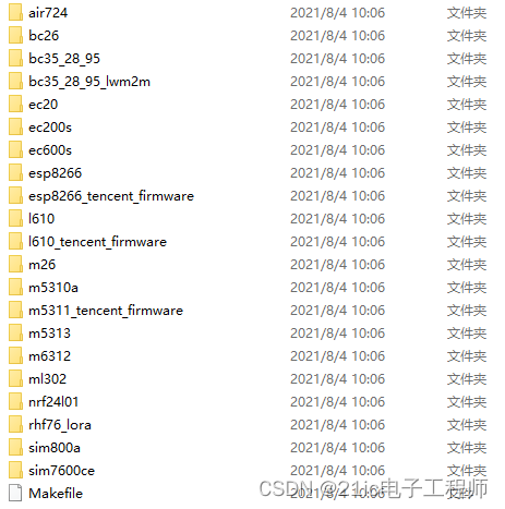 该文件夹为TencentOS tiny支持的通信模组,包括了NB-IOT,wifi,2G,4G,lora。基本满足开发需求,使用很方便。