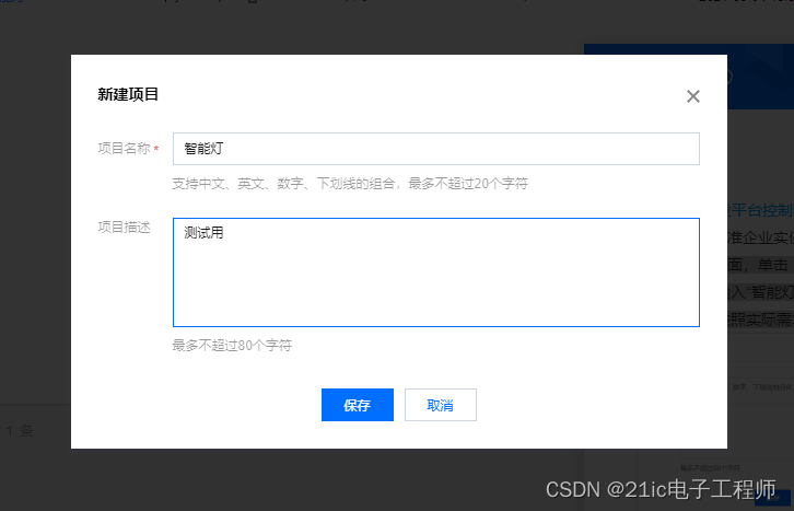 项目基本信息填写完成后,单击【保存】,即可完成新建项目。