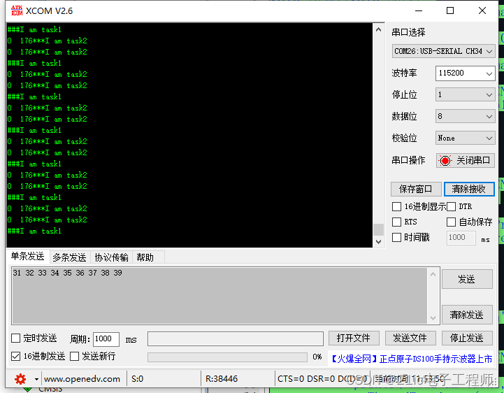hello_world.c文件主要是创建任务,以及任务之间的调用。可以在串口观察任务运行情况