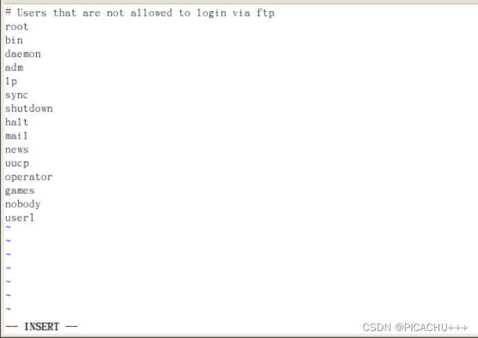 ftpusers:用户的黑名单 把用户加入黑名单就不能够使用ftp服务