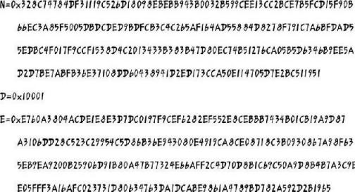 怎么样,看着这么长的N值头痛了吧 (1024比特二进制位是256位16进制数) 。这么 长的数不要说用手工计算,就是用计算机来计算,也需要专门编写处理大整数运算的相关