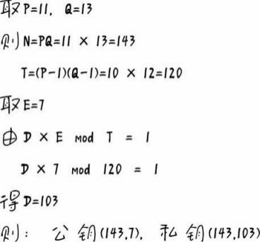(1) 随意选择两个大的素数P和Q ,P不等于Q。