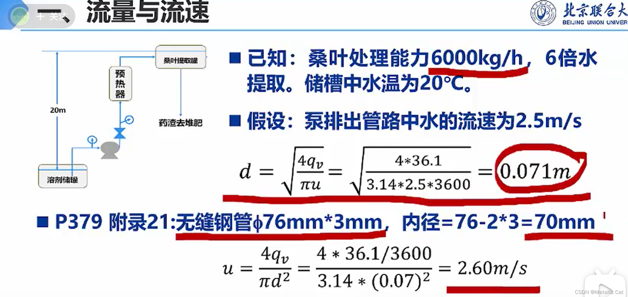 2.选定好标准管径后根据这个管径的内径长代入公式求出流速
