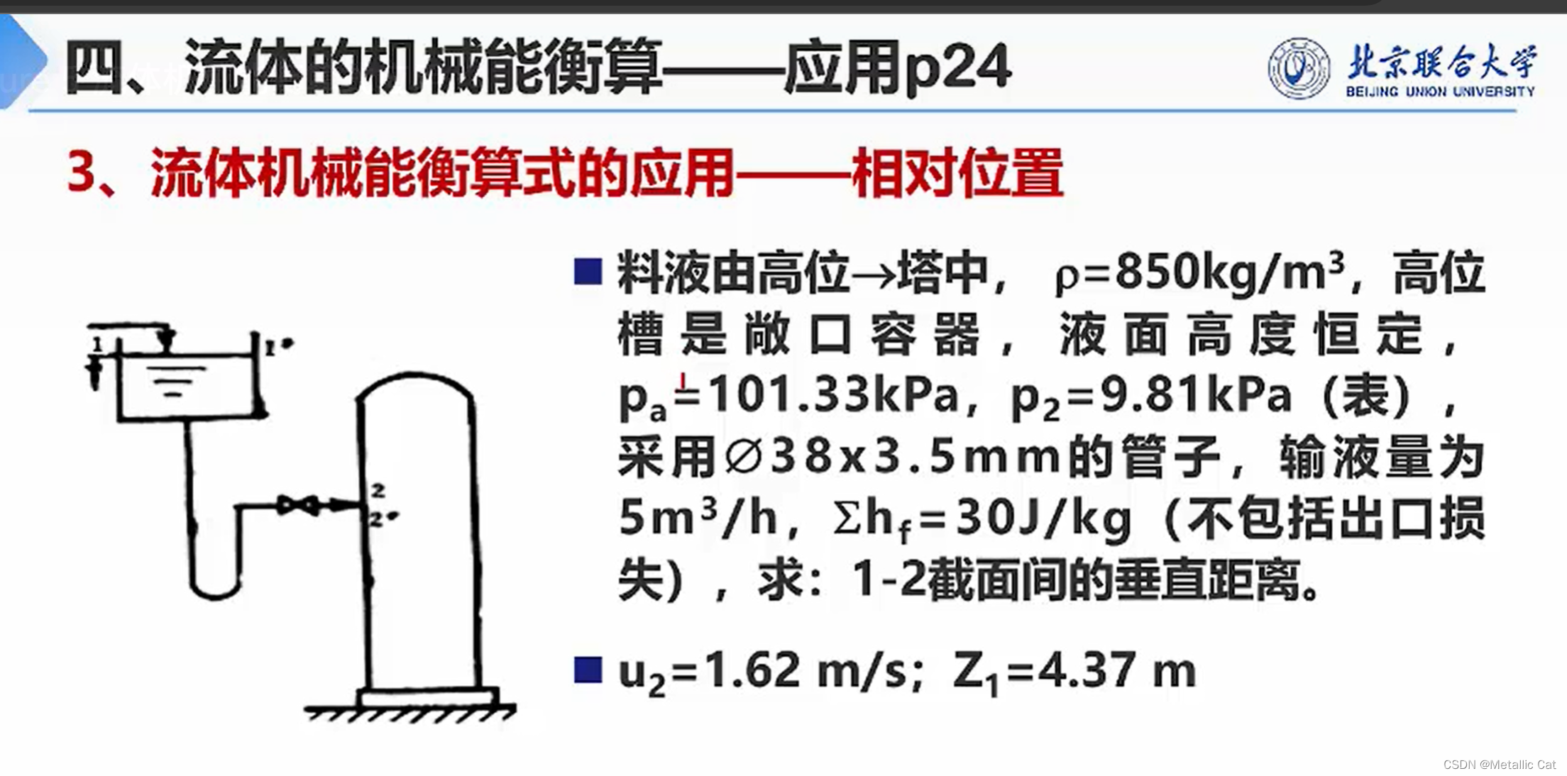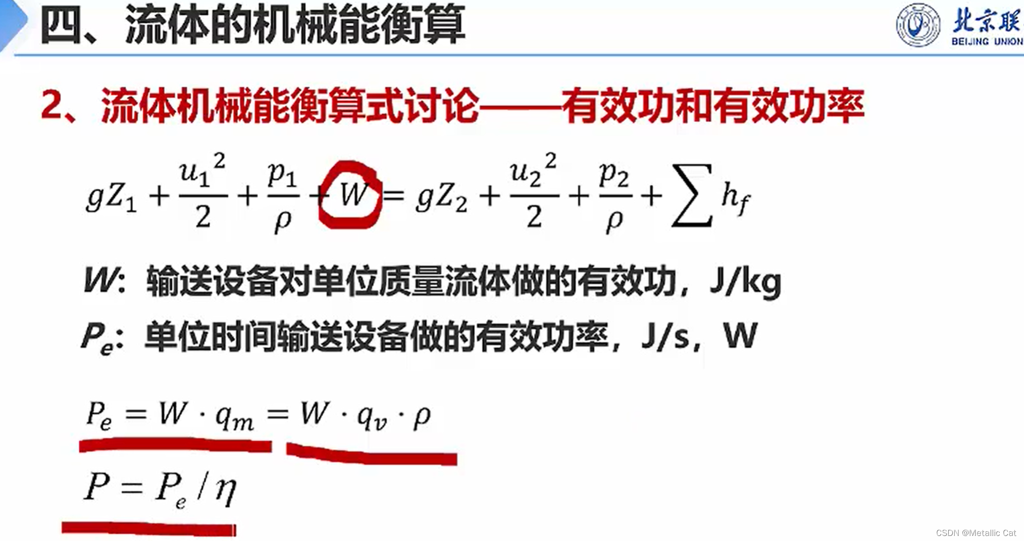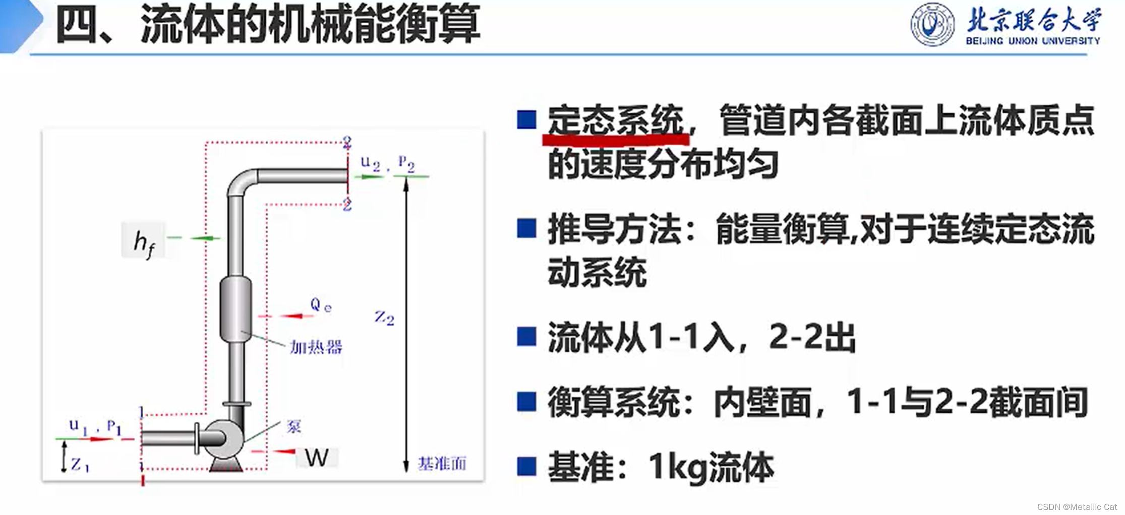 通过这个式子我们就能够看出之所以要有1,2两个截面之间的垂直距离(重力势能差)是为了将重力势能差转变为流体的动能,静压能以及摩擦损耗的内能
