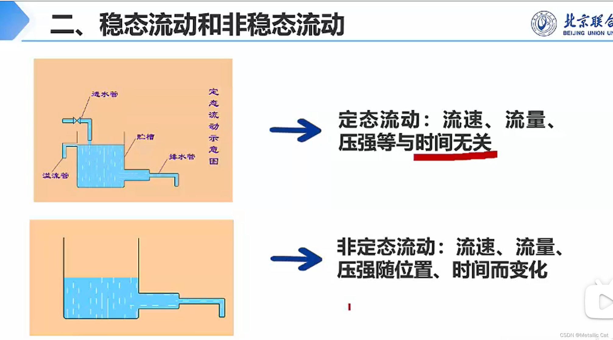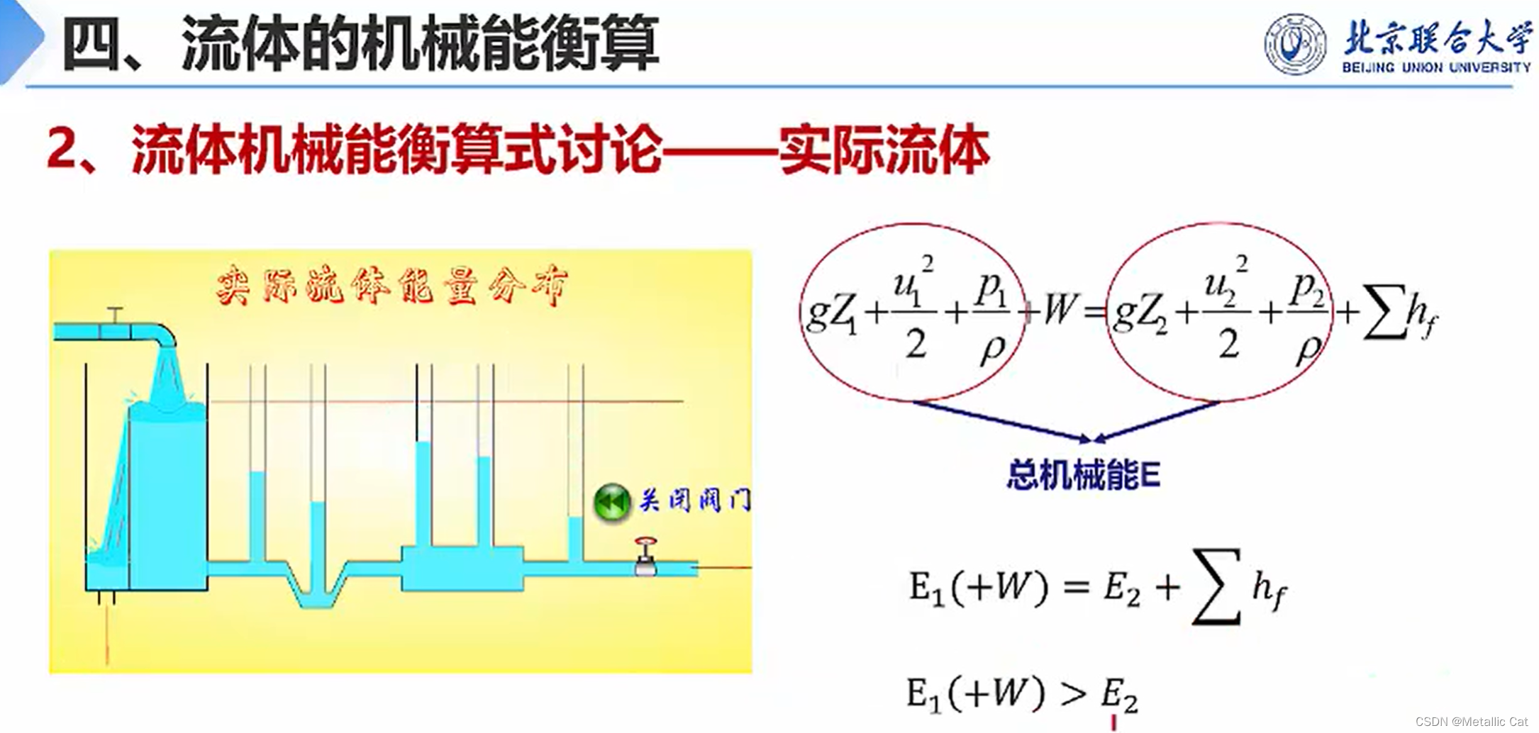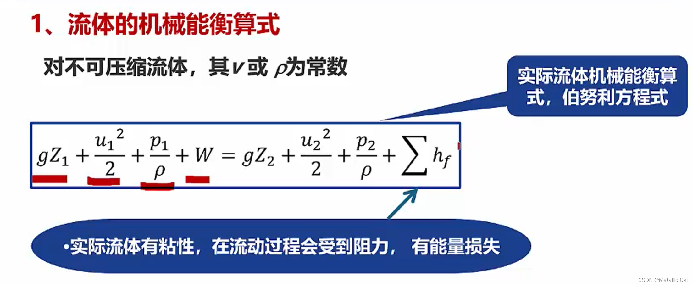 上面这个不变明显是错的,因为实际流体在流动的时候会产生摩擦。导致能量损耗,使得机械能不守恒,即机械能会发生改变(改变为变小,由于阻力损耗,机械能部分转换为了内能)