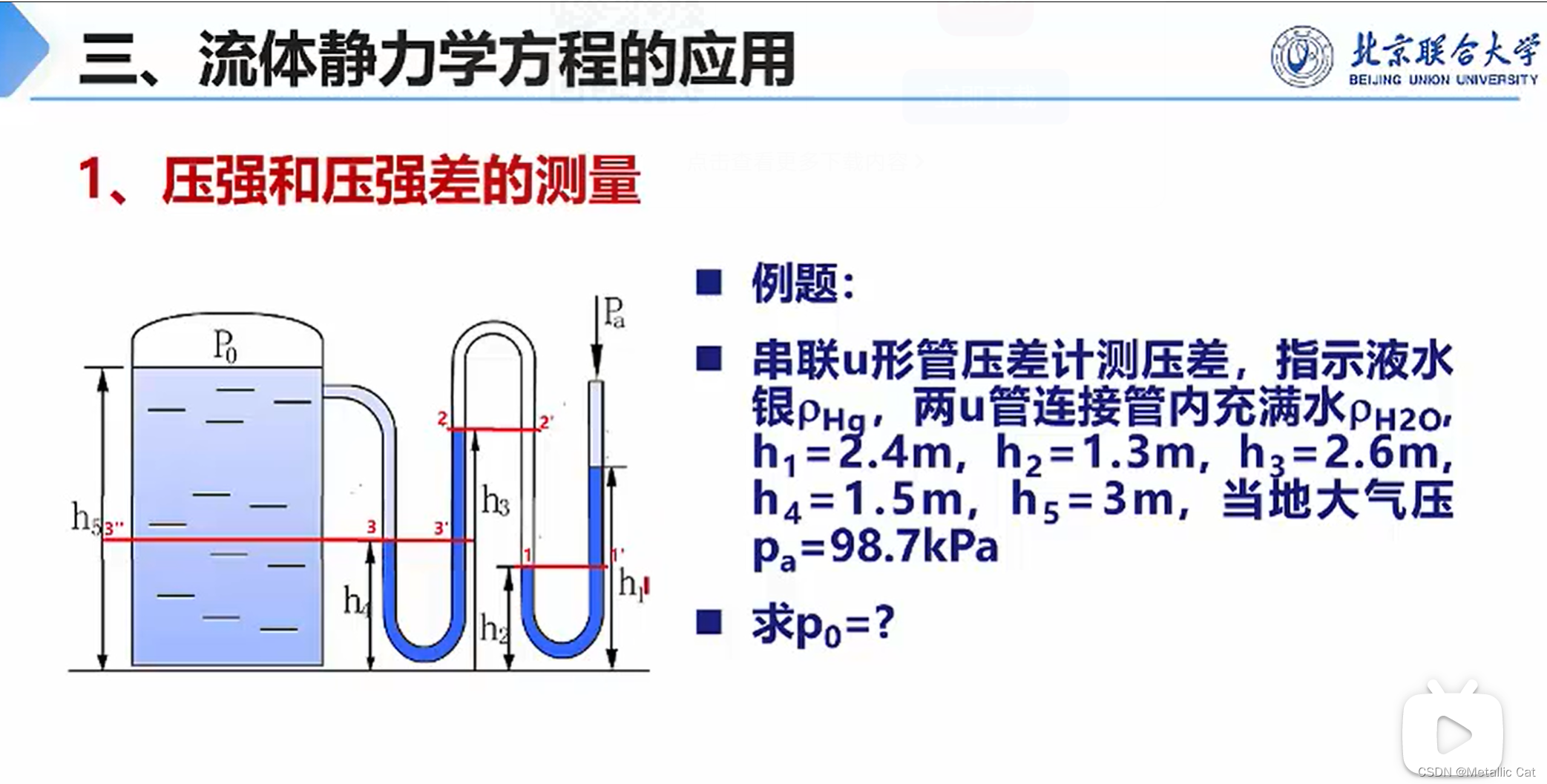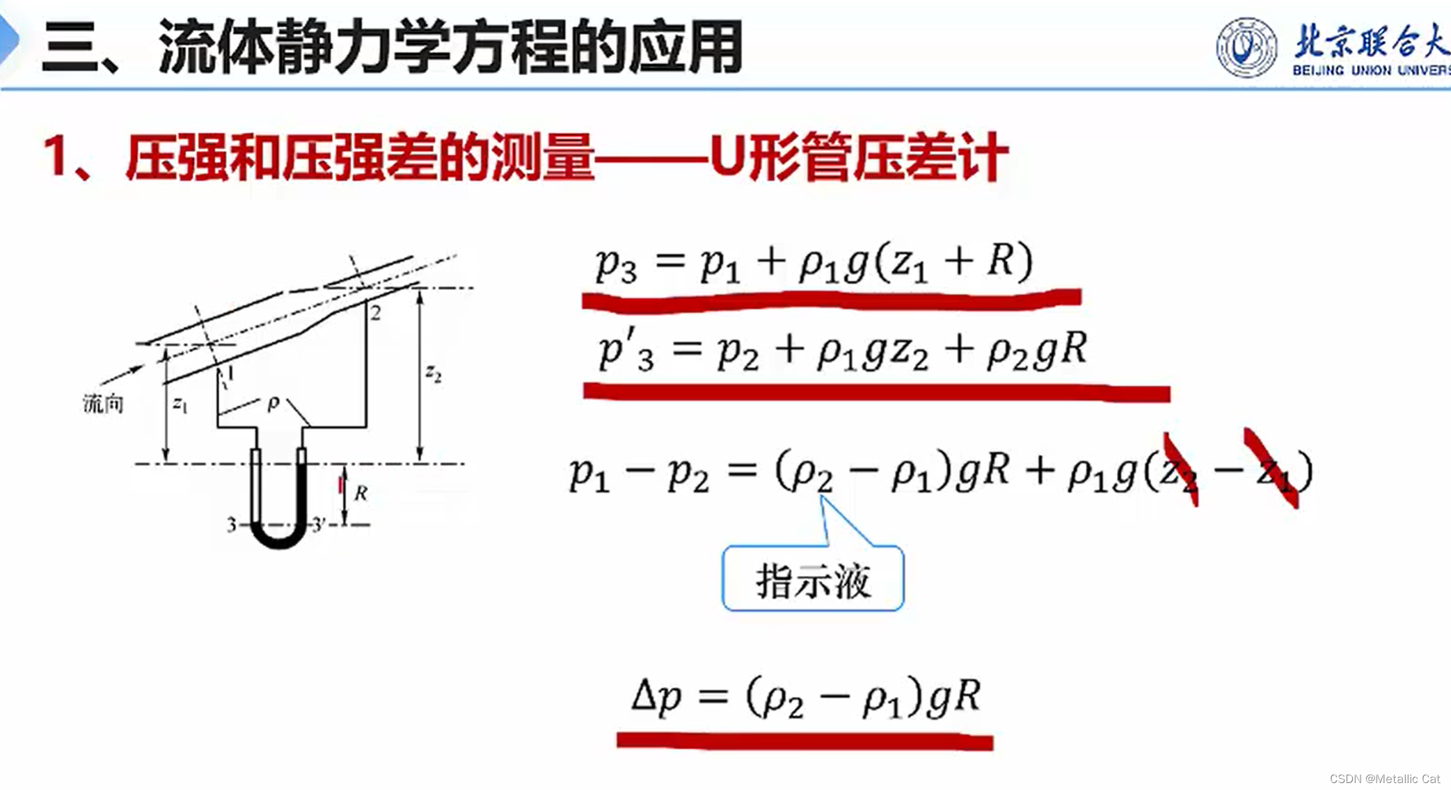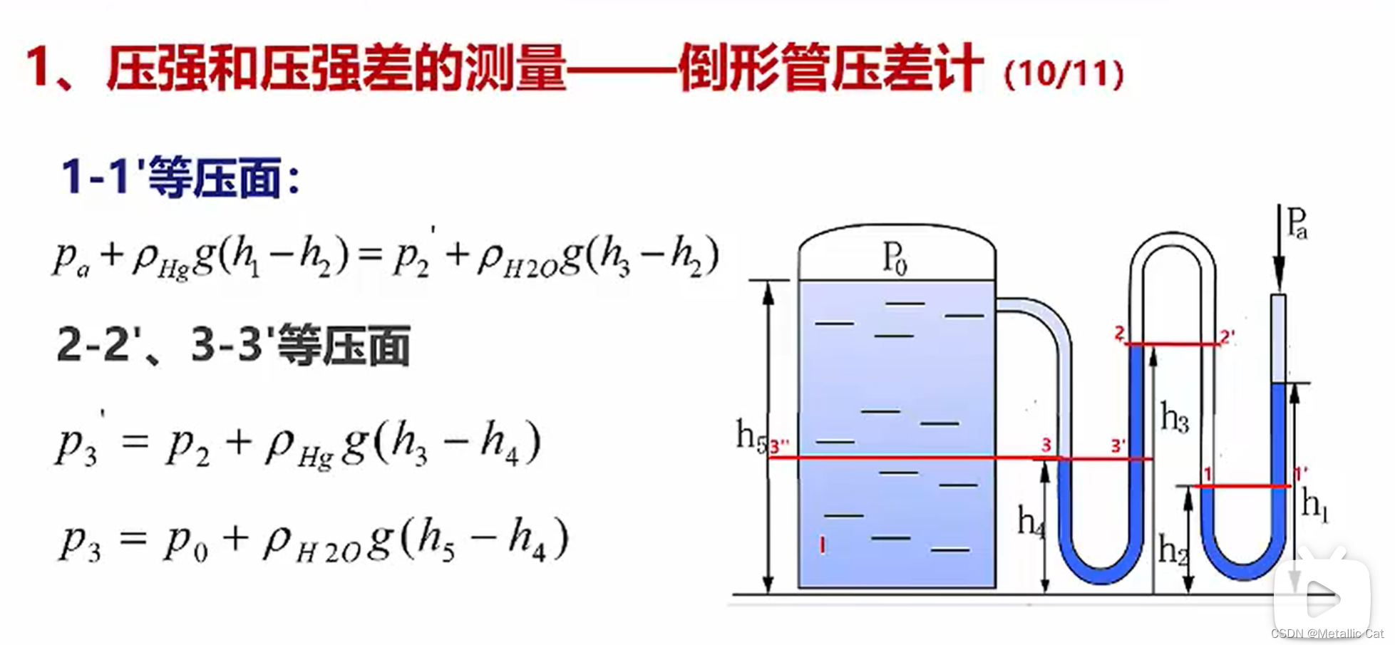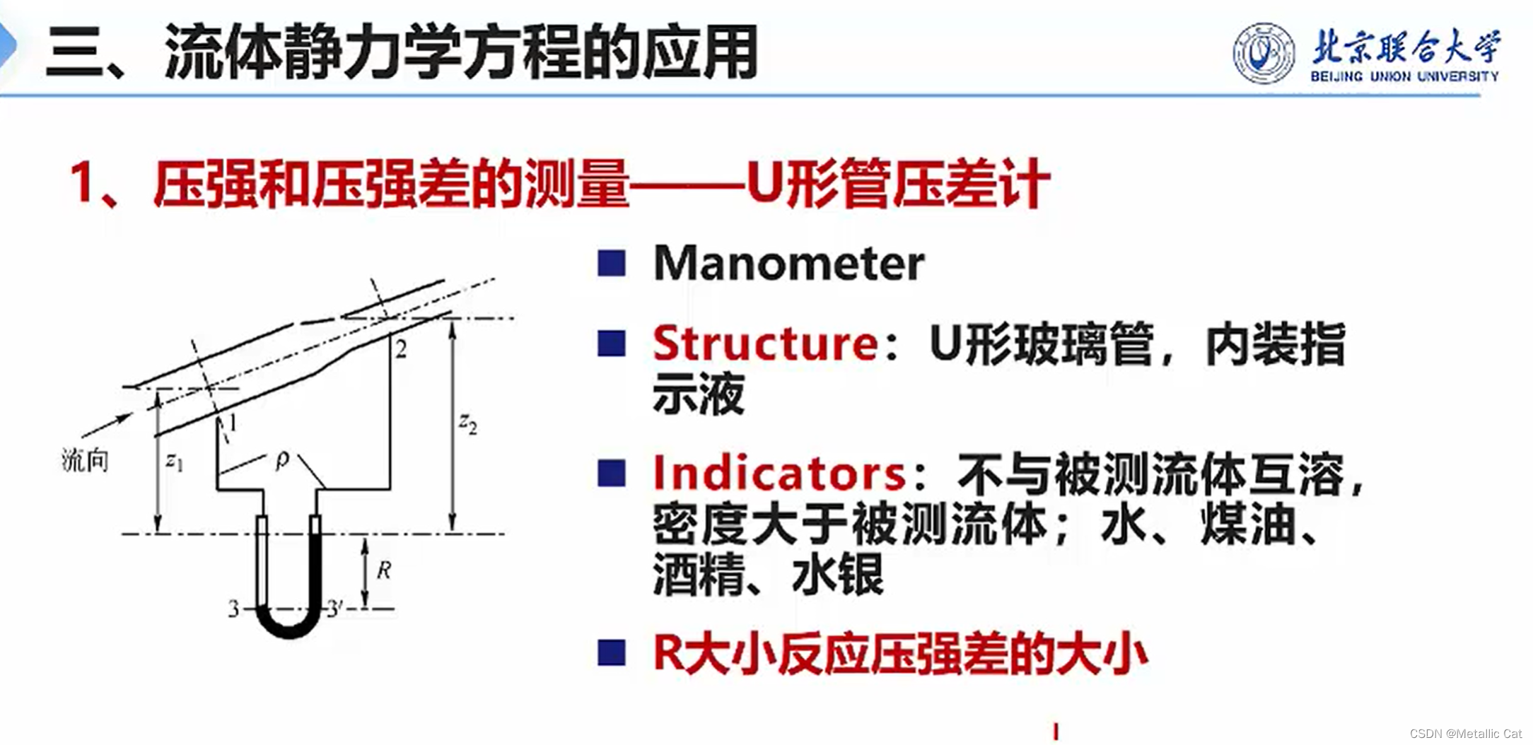 2.我们前面提到的等压面的适用范围是在 静止的,连续的同一种流体中(U形管中流体被断开了,用不了等压面)