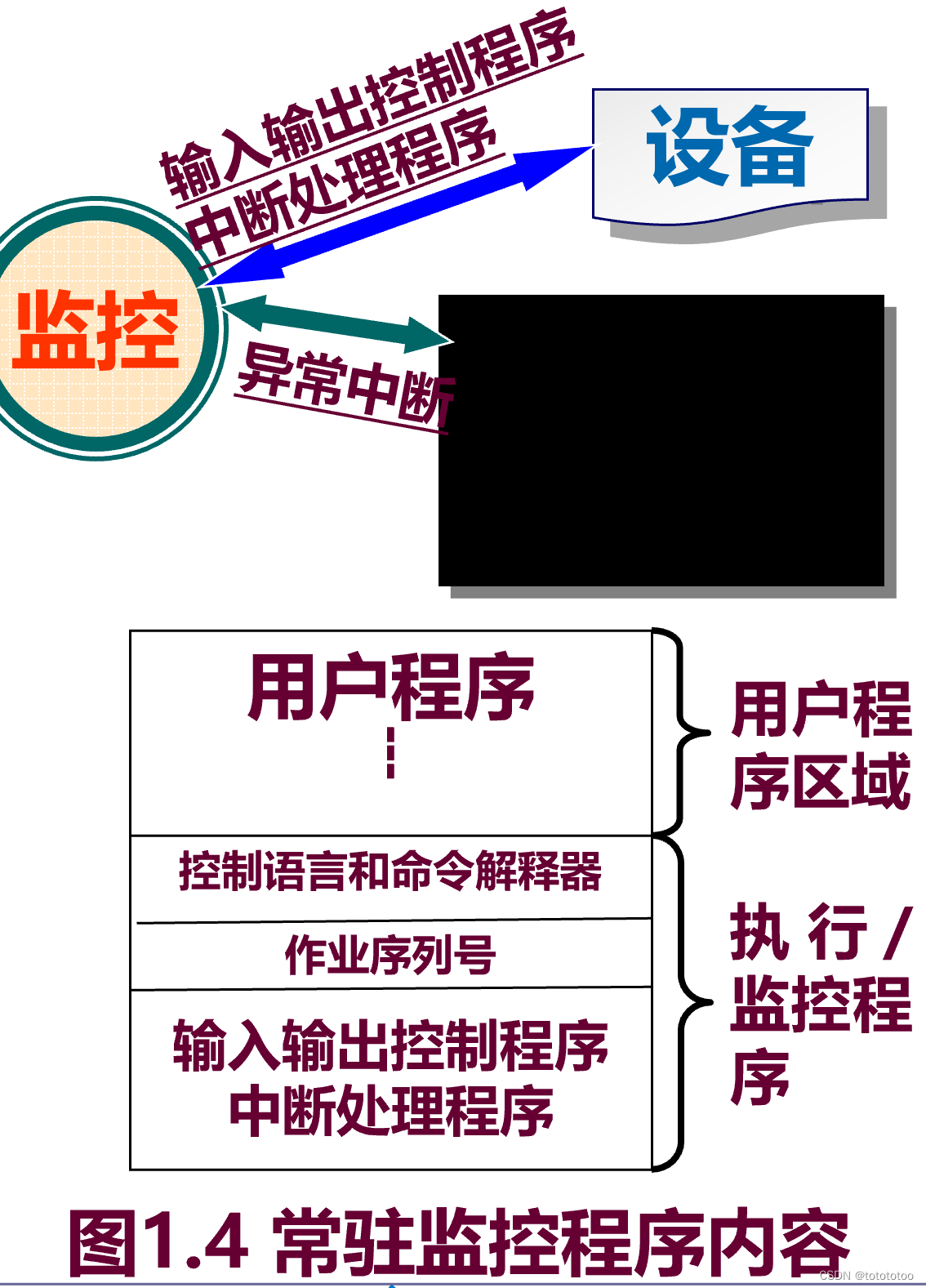 - 输入输出控制程序和中断处理程序 永驻内存成为执行程序(或监督、控制程序)