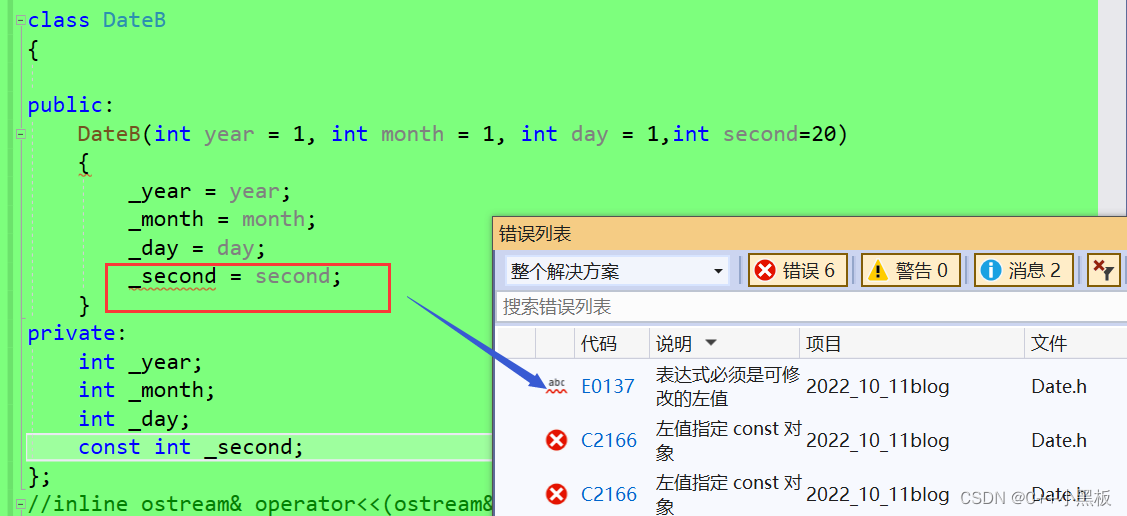 Date d6={2022,10}; Date d7={2022,10,12};差点忘了说:这个标准是C++11才支持的,所以比较老版的编译器比如vc6.0,vs2008是不支持的。