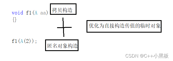 这里也是如此,正常流程是匿名对象构造,然后拷贝构造,优化为了直接构造临时对象。