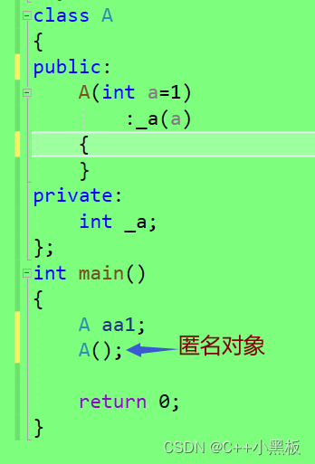 怎么解决呢?一种就是把自定义类型A改成默认构造函数,就是让它缺省,或者完全不给参数,这是一种方式,我们也可以采取另一种方式:初始化列表。