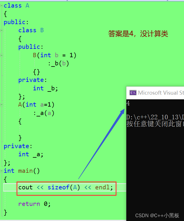 3、sizeof(外部类)=外部类,和内部类没有任何关系。