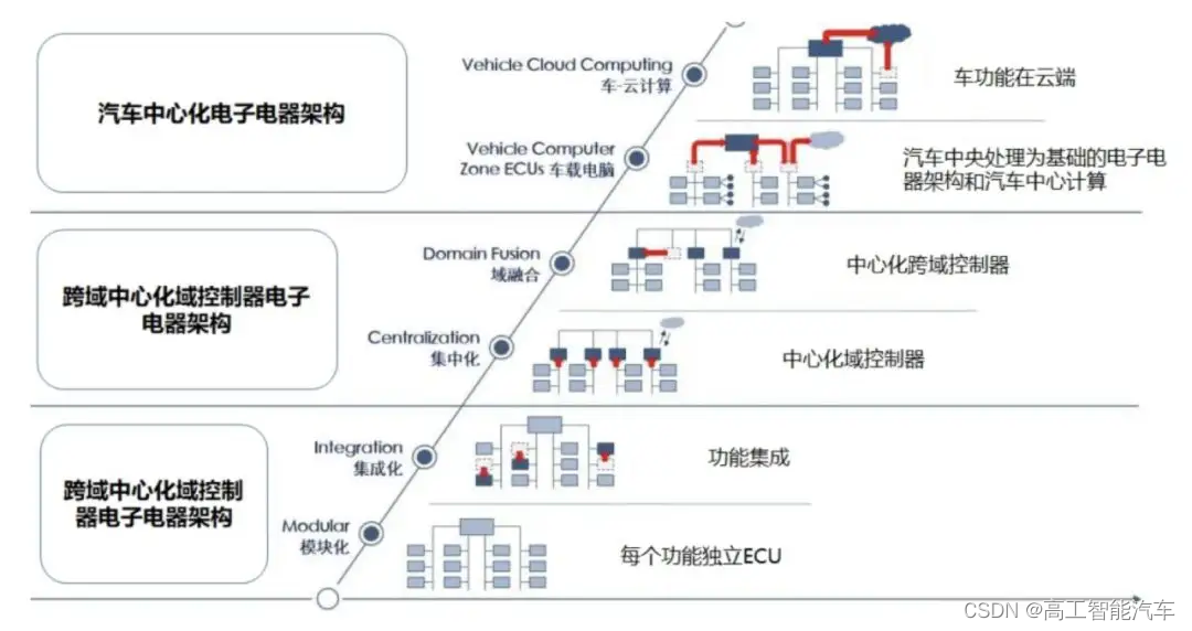 从功能独立的分布式架构,到功能集成的域控制架构,如今整车电子电气架构正在加速跨入集中式电子电气架构3.0阶段。