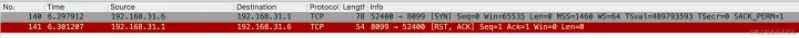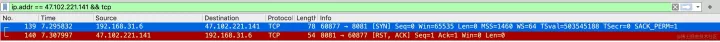 进行连接连接,发现与前面两种情况是一致的,目的机器在收到我的请求后,立马就通过 RST标志位 断开了这次的连接。
