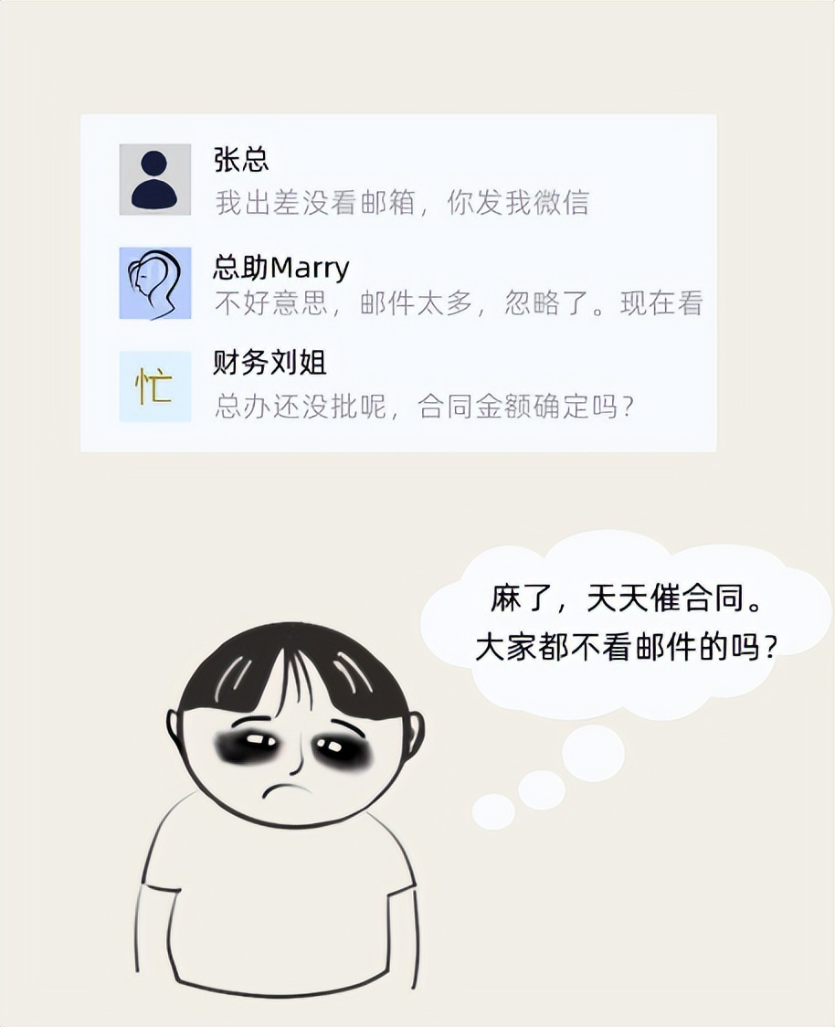 来自部门经理的破防:合同审核涉及人员多,邮件、群发易导致漏审、慢审,难以追踪流程。