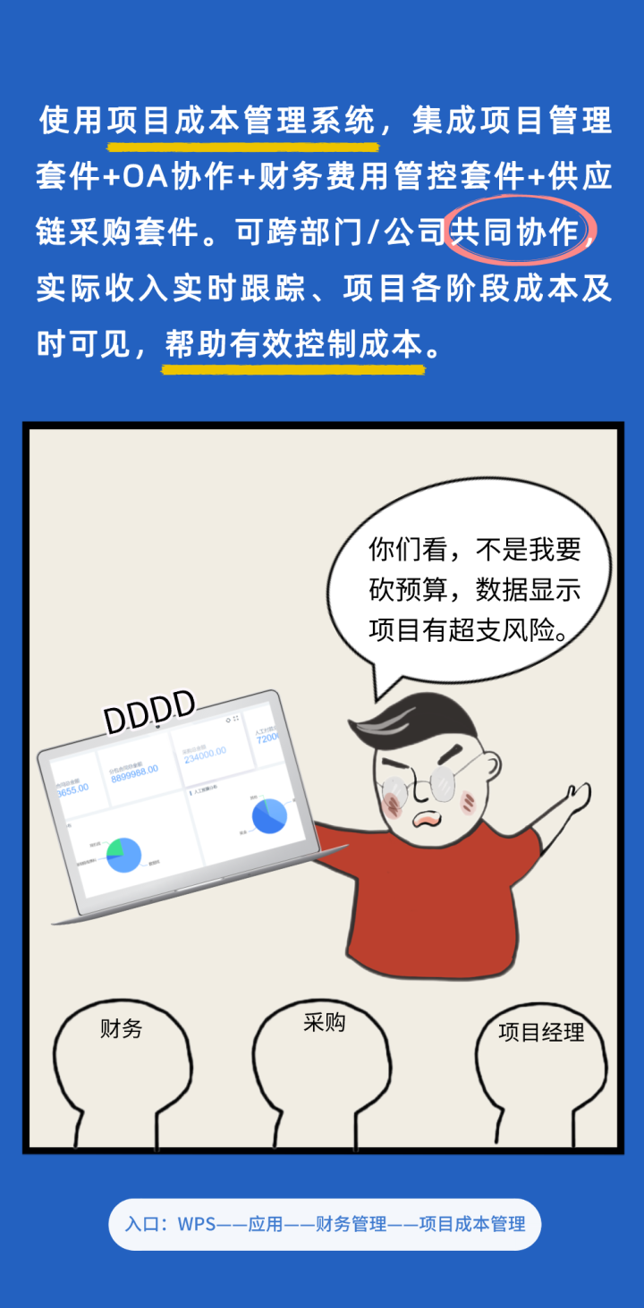 使用项目成本管理系统,集成项目管理套件+OA协作+财务费用管控套件+供应商采购套件。可跨部门/公司共同协作,实际收入实时跟踪、项目各阶段成本及时可见,帮助有效控制成本。