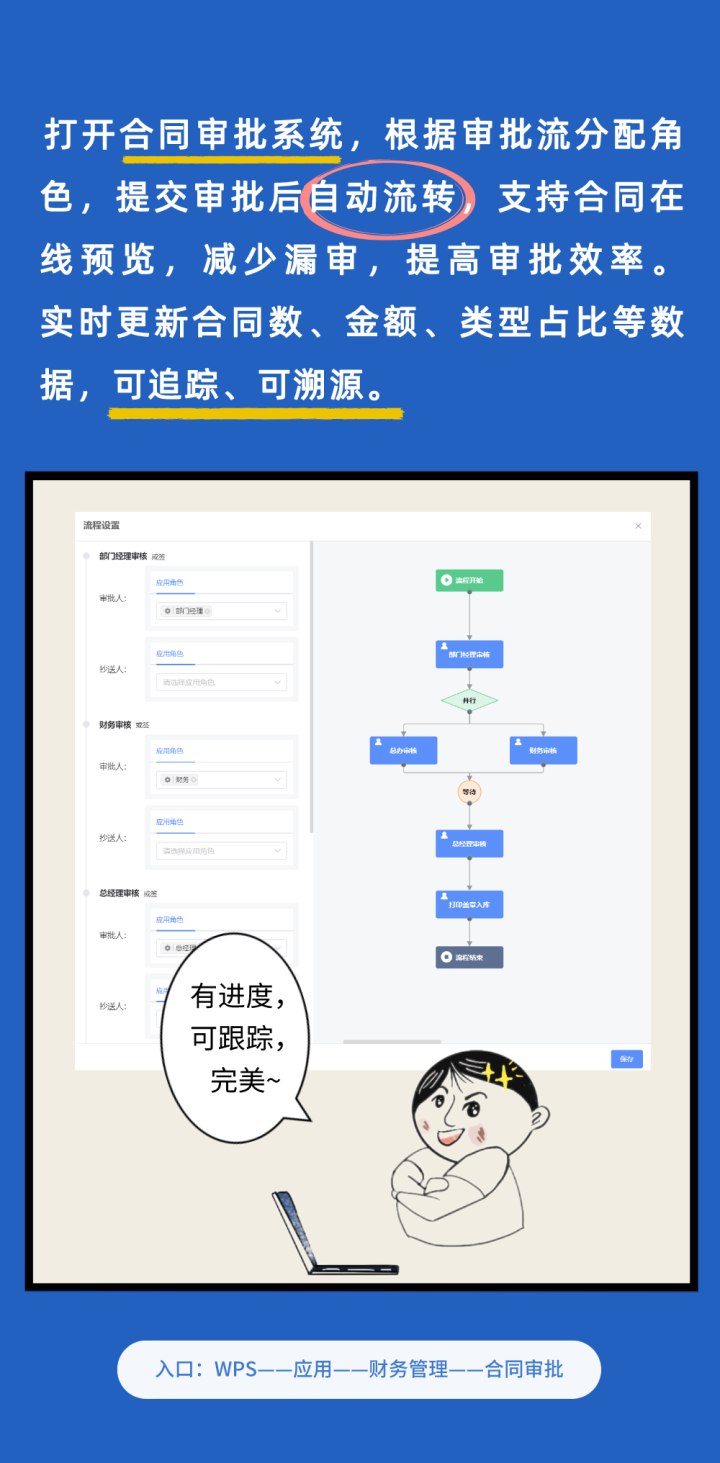 打开合同审批系统,根据审批流程分配角色,提交审批后自动流转,支持合同在线预览,较少漏审,提高审批效率。