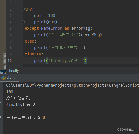 语句中如果没有捕获到异常的话,将继续执行else里的语句
