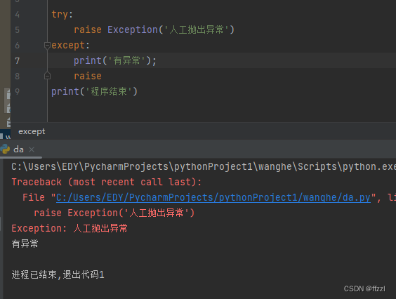 raise Exception('人工抛出异常')
