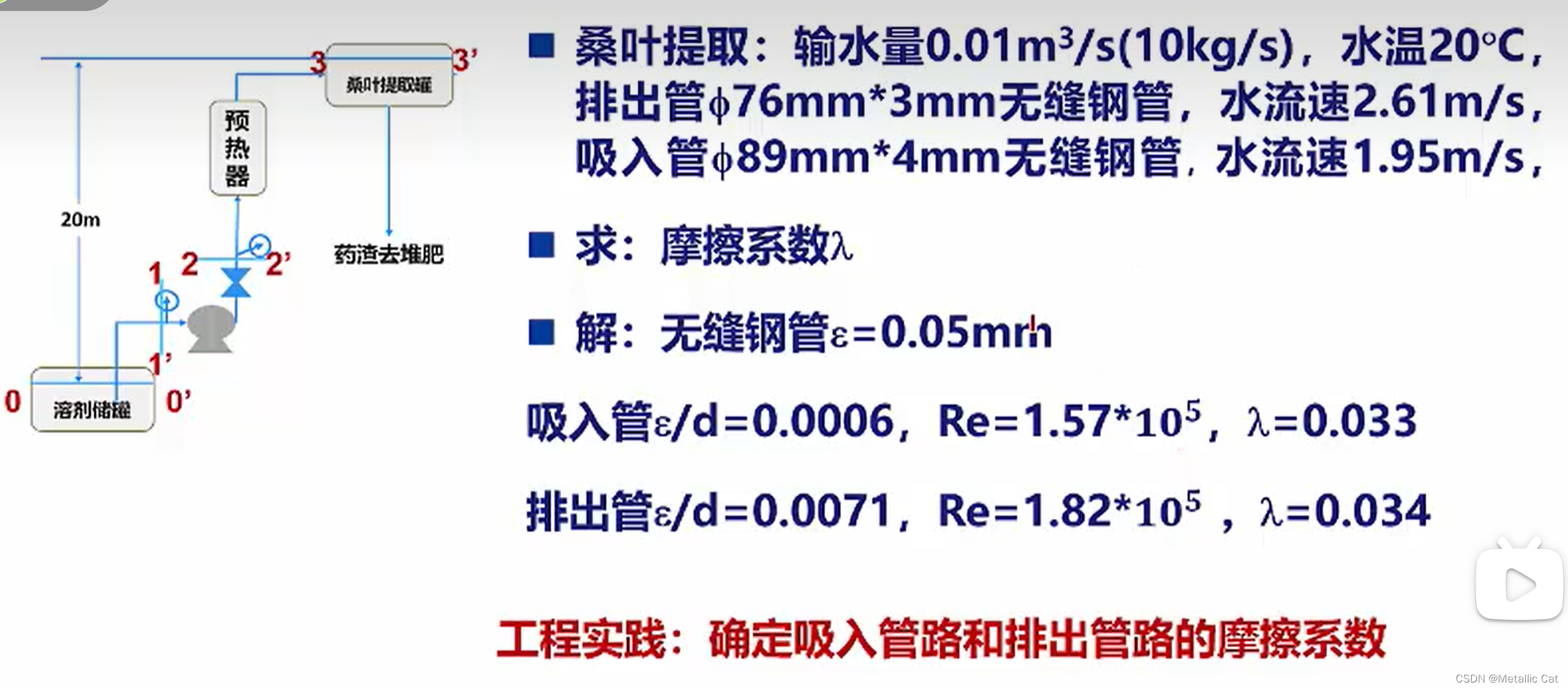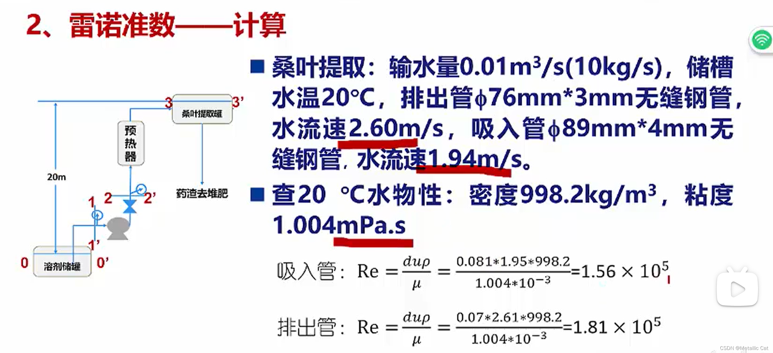 1.查出水的密度和粘度,然后根据数据分别计算出吸入管和排出管对应的雷诺数(计算雷诺数之前还要计算出流体的流速(输水量对应的是流量))