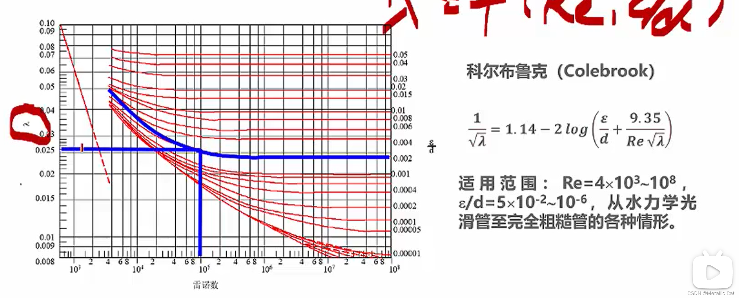 3.结合相对粗糙度和雷诺数,通过查表法或者是公式法求出管的摩擦系数
