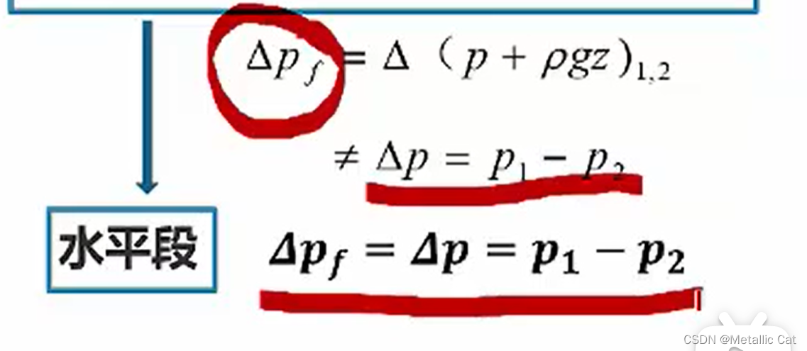 1.对于水平段而言,其压强差吊塔pf只是由于阻力损失造成的,所以可以写成上图中黑体加粗这种形式