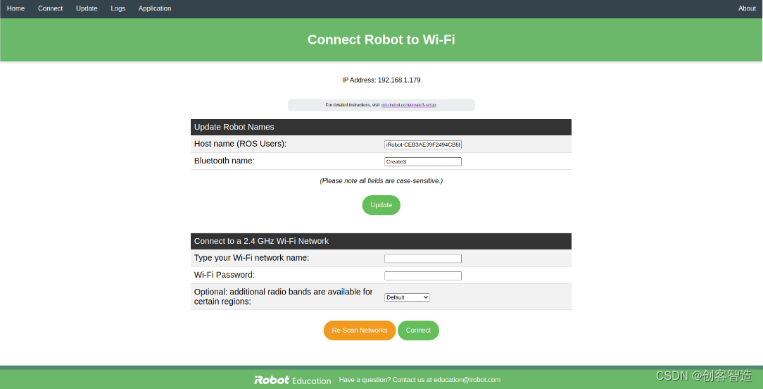 Create® 3 现在处于AP模式,使用笔记本或手机连接到名为“Create-XXXX”的WiFi网络