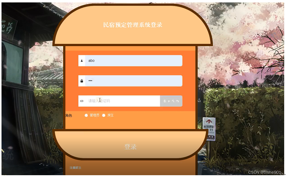 登录,通过输入账号,密码,验证码,选择角色并点击登录进行系统登录操作,如图5-2所示。
