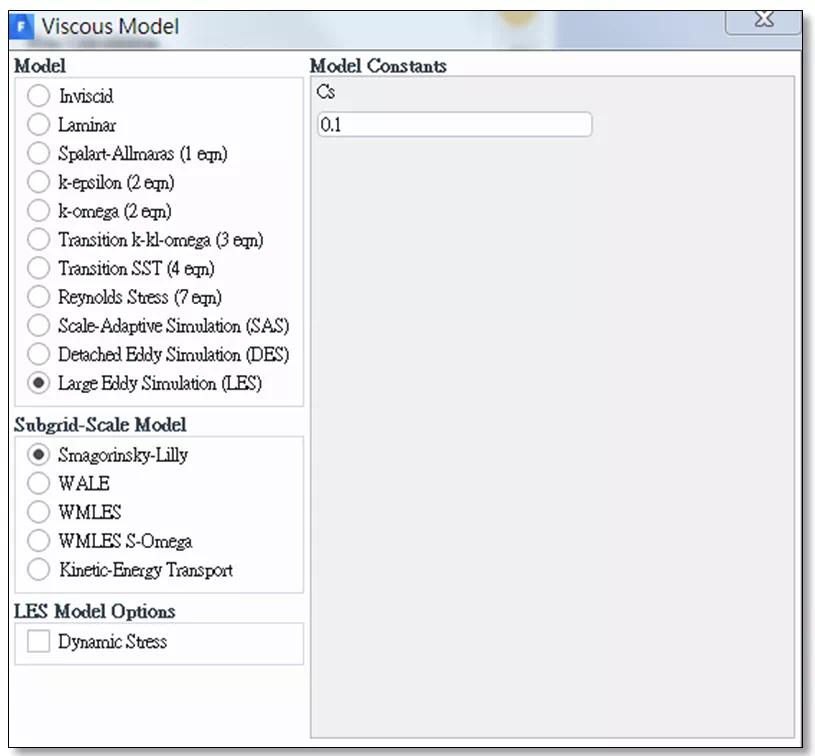 第二阶段动态稳定平衡:此阶段涉及到噪声,因此风扇必须转动,我们由此切换设置为Mesh Motion。因要计算噪声涡损,改以瞬态模型做计算,并切换为LES紊流模式(Large Eddy Simulation),当达到动态压力持续稳定后,才进入第三阶段。
