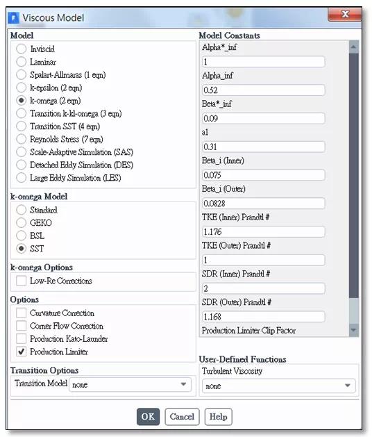 第一阶段计算稳态:计算噪声不应直接从瞬态进行,因在瞬态抽取噪声数据前,要达稳定需要一段时间;因此我们要采先进行稳态计算,可快速先达到稳态平衡。默认动量计算采k-omega SST。