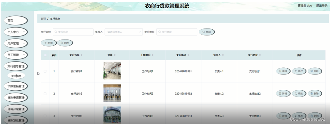 图5-6支行信息管理界面图
