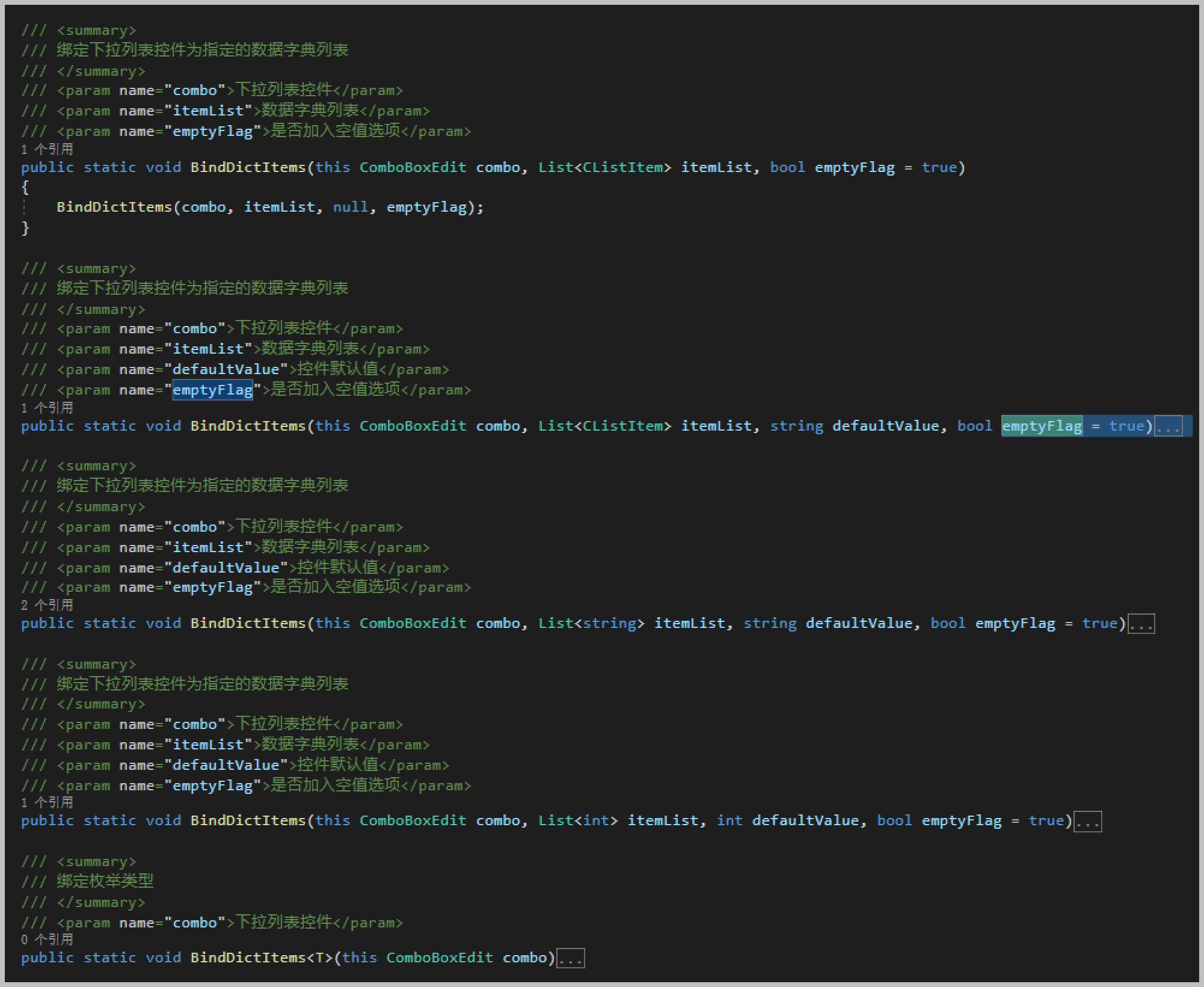 public static void BindDictItems(this ComboBoxEdit control, string dictTypeName, string defaultValue, bool emptyFlag = true)