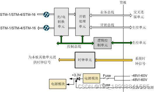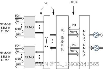 SLNO实现STM-16/STM-4/STM-1信号的接收和发送,完成光电转换、开销字节的提取和插入处理,并上报线路上产生的告警。