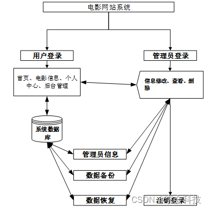 使用电影网站系统系统的用户分管理员和用户两个角色的权限子模块。