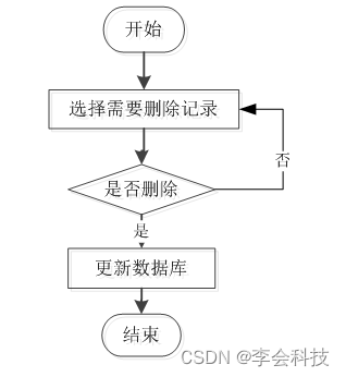 用户选择要删除的信息并单击Delete按钮。系统提示是否删除信息。如果用户想要删除信息,系统将删除信息。系统数据库删除信息。删除信息流程图如图3-5所示。