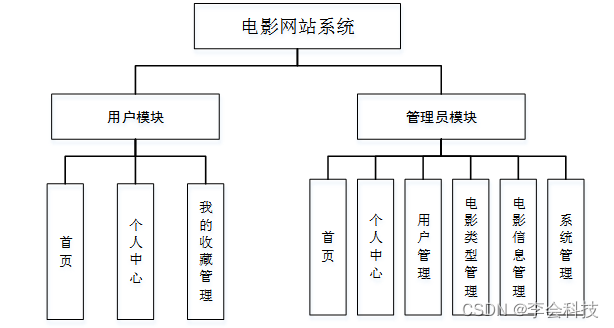 这些功能可以充分满足电影网站系统的需求。此系统功能较为全面如下图系统功能结构如图4-3所示。