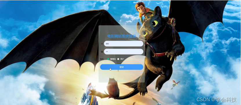 管理员通过用户名和密码,密码填写完成后选则提交,如图5-8所示。管理员登录成功后进入到系统操作界面,可以对首页、个人中心、用户管理、电影类型管理、电影信息管理、系统管理等功能模块进行相对应操作,如图5-9所示。
