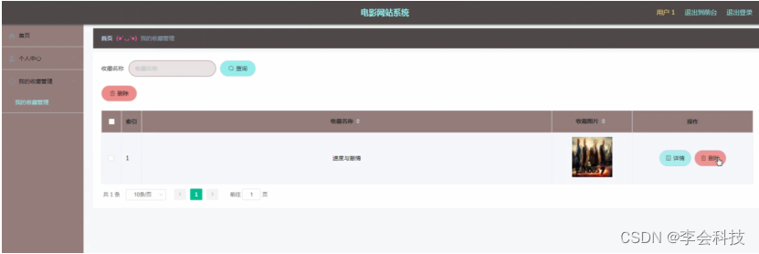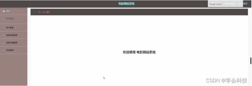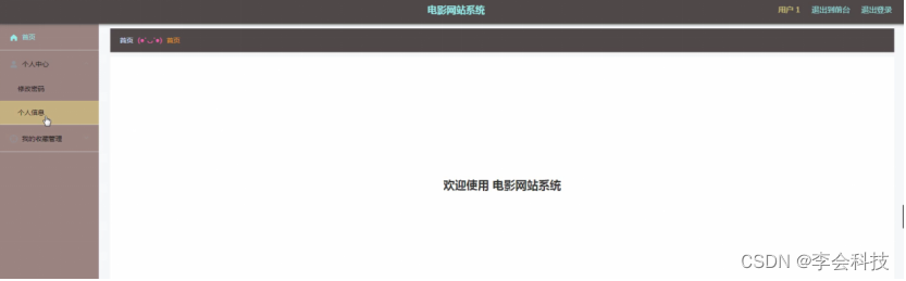 管理员所能使用的功能主要有:首页、个人中心、用户管理、电影类型管理、电影信息管理、系统管理等。
