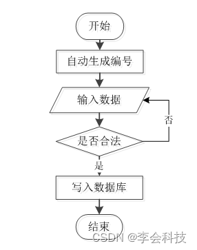 添加信息,编号系统使用自动编号模式,没有用户填写,用户添加信息输入信息,系统将自动确认的信息和数据,验证的成功是有效的信息添加到数据库,信息无效,重新输入信息。添加信息流程如图3-3所示。