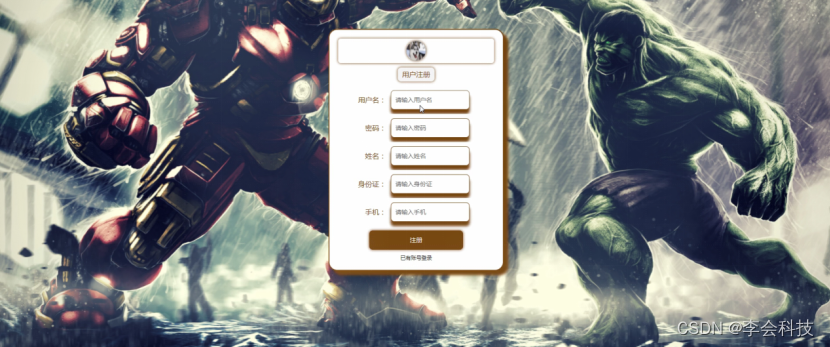 通过网站页面可以查看首页、电影信息、个人中心、后台管理等信息,如图5-1所示。通过用户注册可以填写用户名、密码、姓名、身份证、手机等信息,进行注册操作,如图5-2所示。