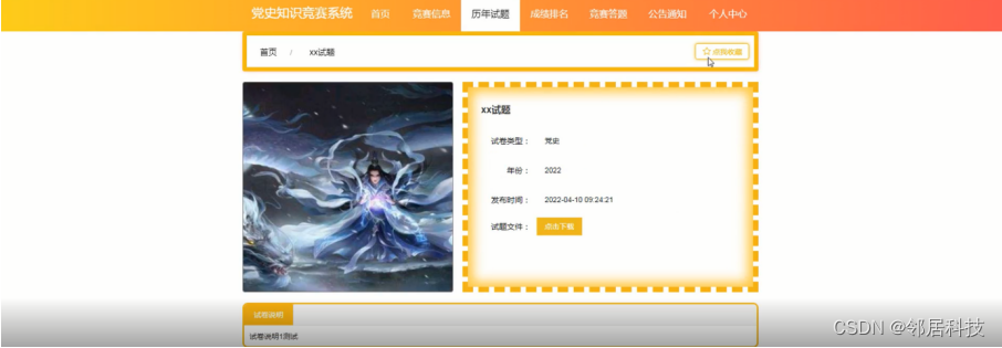 (3)实用性:该设计能够满足党史知识竞赛系统的实际的功能需求,能够在实际中让用户真正使用到,具有实际的应用价值。